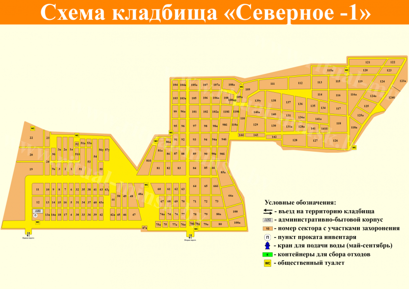 В связи с тем, что размер ранее установленных оград и элементов благоустройства на участках для захоронения не соответствует нормам законодательства, по которым был выделен данный участок, ПРОСИМ ВАС ПЕРЕД ПРОВЕДЕНИЕМ РЕМОНТНЫХ РАБОТ И РАБОТ ПО БЛАГОУСТРОЙСТВУ УТОЧНЯТЬ РАЗМЕР УЧАСТКА У АДМИНИСТРАЦИИ КЛАДБИЩА «Северное-1».