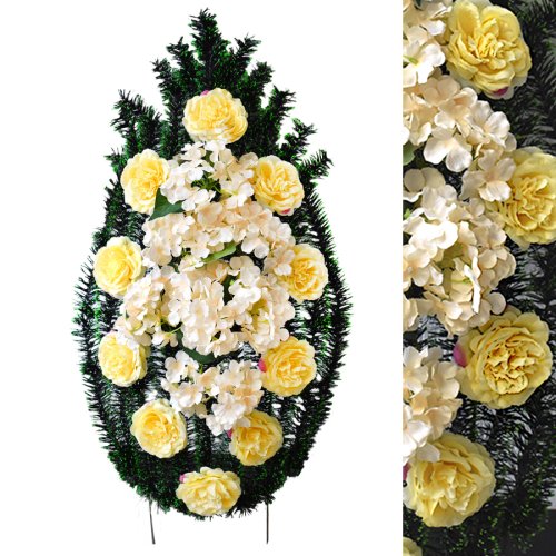 У нас большой ассортимент ритуальных изделий в Минске из натуральных и искусственных материалов. Составляемый ритуальный венок может быть любой формы, композиции и тематики.
